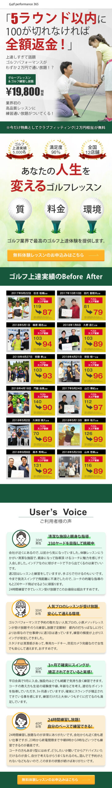ターゲットである50〜60代男性に向け、信頼感と実績が伝わる構成を意識しています。